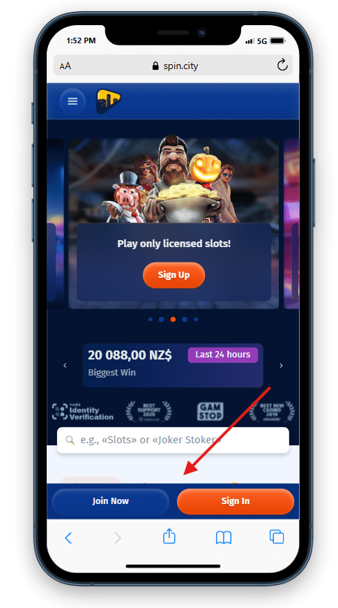 Tap Join Now and complete the short registration form at your chosen NZ $10-deposit casino.