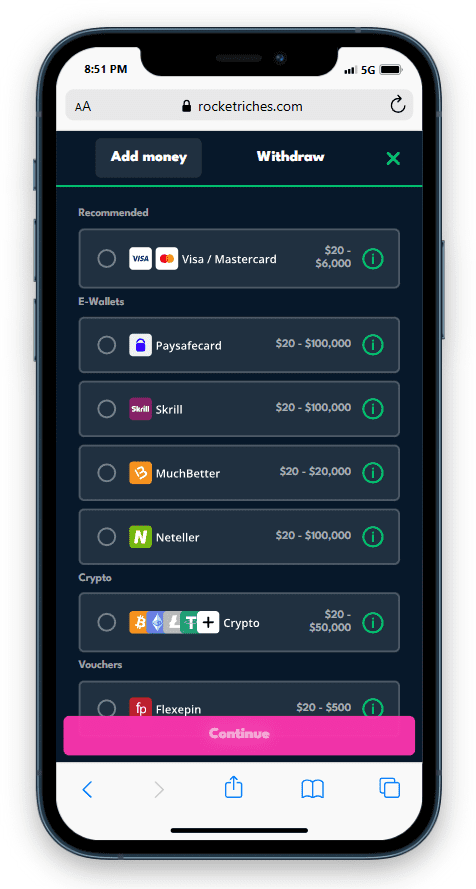 Payout options: Visa, Mastercard, Skrill, Neteller, Google Pay, Apple Pay...