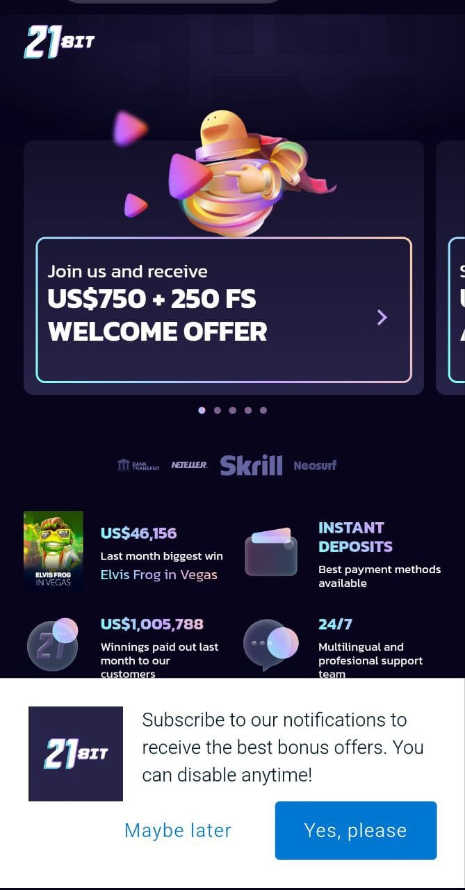 A lot of players say the withdrawal speed at 21Bit is impressive. I also got my withdrawal quickly, same day. This casino does not unnecessarily delay payments.