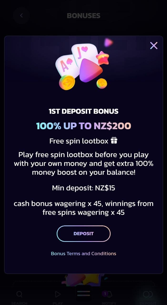 You also get up to NZ$200 plus some free spins on your 2nd and 3rd deposits.