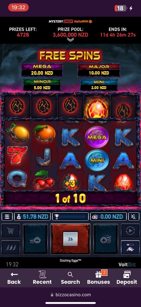 Those Kiwi casino customers who are willing to make a deposit of 30 NZD will be able to spin the Fortune Wheel and receive a random bonus. Take a chance and see what Fortune brings you at Bizzo.