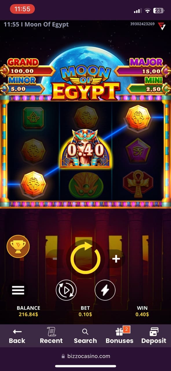 So, let me introduce the experience I had with the Bizzo operator. Luckily, it was one of the best online casinos I had to visit and review, so I look forward to telling you all about it. I loved the fact that once you open the casino’s official website, you get to see the Fortune Wheel. It does not require registration. Simply spin the wheel and see what prize you have. I managed to win 5 free spins for the Book of Nile Revenge pokie, which was amazing for a start.