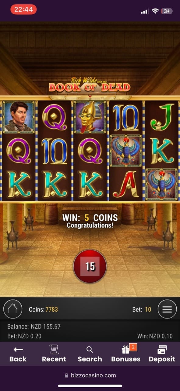 I was stoked with all the game titles I picked: almost each has free spins and bonus rounds. The games I played included Gates of Olympus 1000 where 4 scatters gave 15 free spins with winnings of 2.96 NZD, Moon of Egypt with a bonus game and winnings of 16.40 NZD, Big Bass Bonanza didn’t have free spins but I still managed to win 6 NZD, Book of Dragon Hold and Win, Sizzling eggs where after landing 3 scatters I got 10 free spins and won 6.73 NZD, Samba Da Deuza, Book of diamonds, It’s a Joker with a few free spins, Aztec Clusters, Angel vs Sinner where 3 scatters unlocked 10 free spins and a landed a staggering win of 179.85 NZD. That’s choice! Then I also played Hands of Midas II, where 3 scatters unlocked 11 free spins, and I managed to win 4.98 NZD. Also, I managed to win 18.90 NZD at Wisdom of Athena 1000 and 6.20 NZD at Beast Band.
