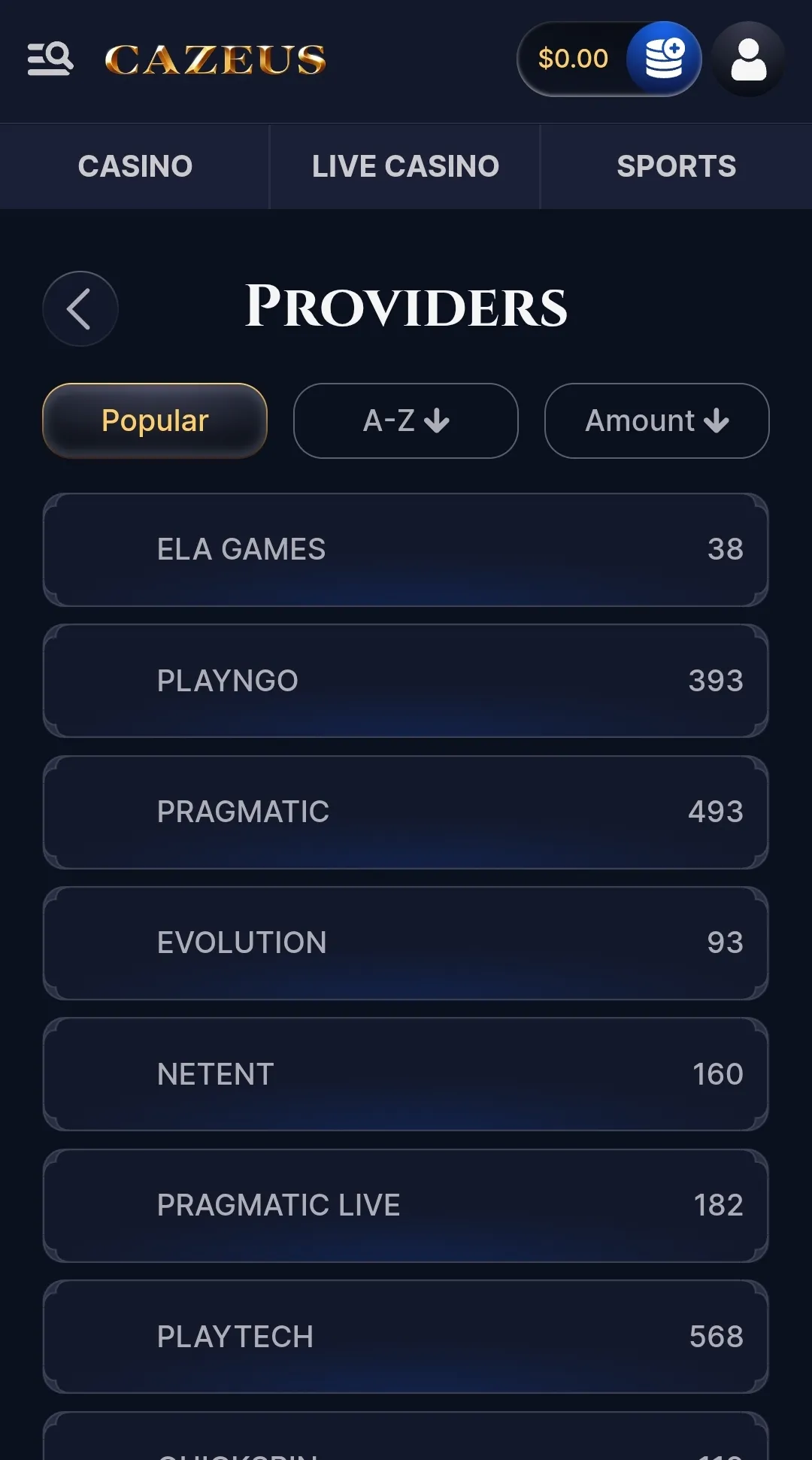 As always when writing reviews, I signed up at Cazeus Casino to get a real feel for the platform, checking out everything from the game selection to the bonuses and overall user experience. Right from the start, I was pretty impressed—and I love the site’s design, complete with its ancient Greek theme, with Zeus throwing lightning bolts across the page.