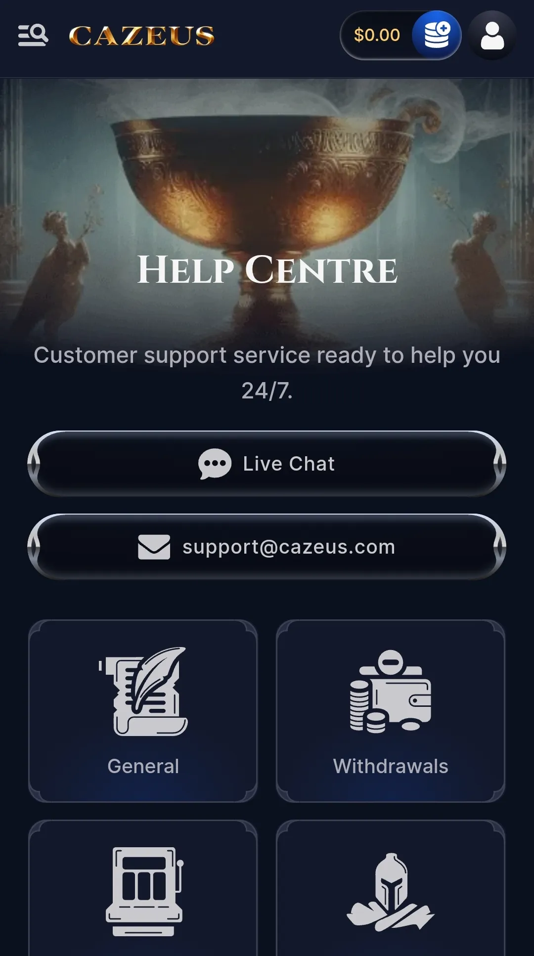 Cazeus Casino offers customer support in several ways. Firstly, you can use a live chat facility, which connects you in real time with a trained member of the customer support team. There is also email support available, and a Help Center, where some of the most common questions are answered.