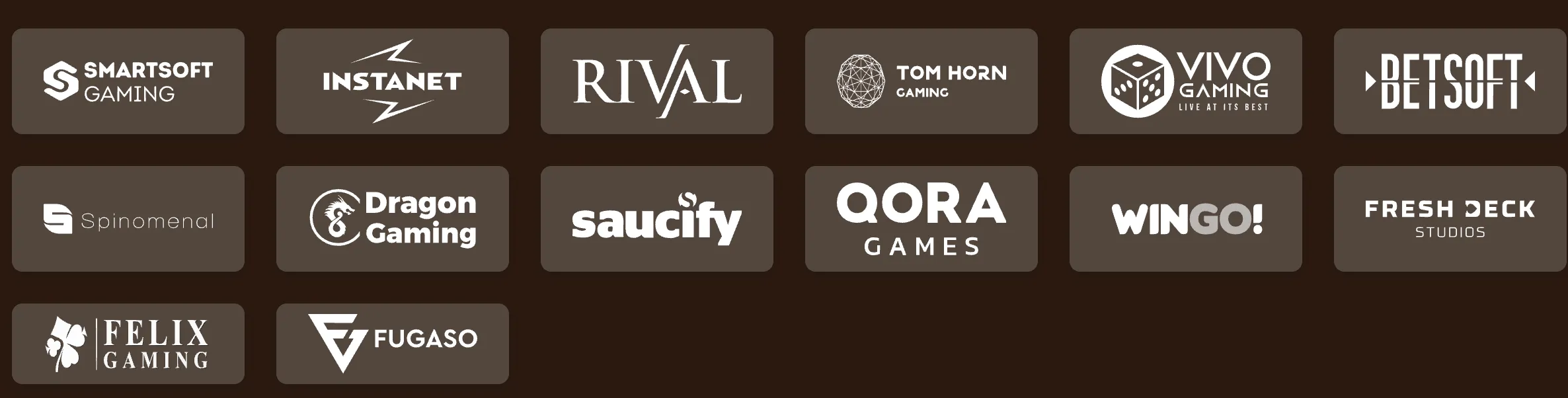 Rival, Betsoft, Saucify, Spinomenal, Tom Horn, Arrow’s Edge, Genii, Vivo (Live) and more