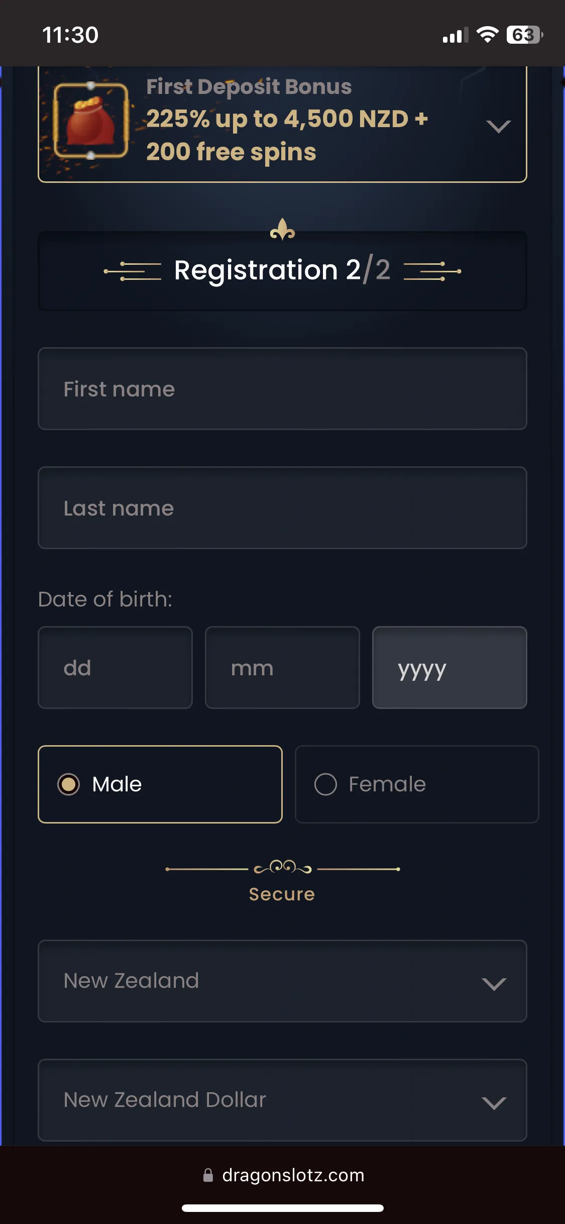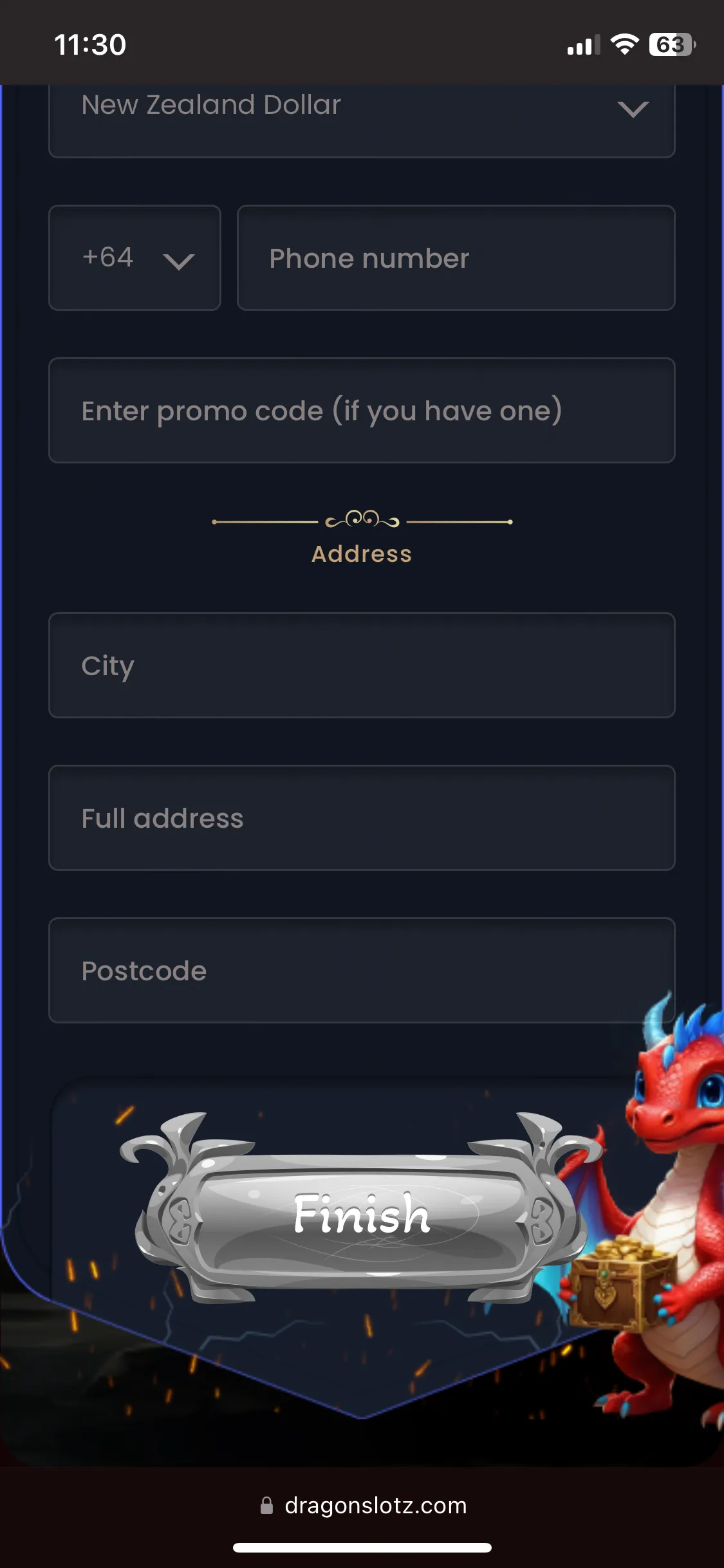 You will easily spot a green Register button once you open the DragonSlots official website via your desktop or mobile device. Tap it, choose a bonus or proceed without a bonus. Now enter the following details: