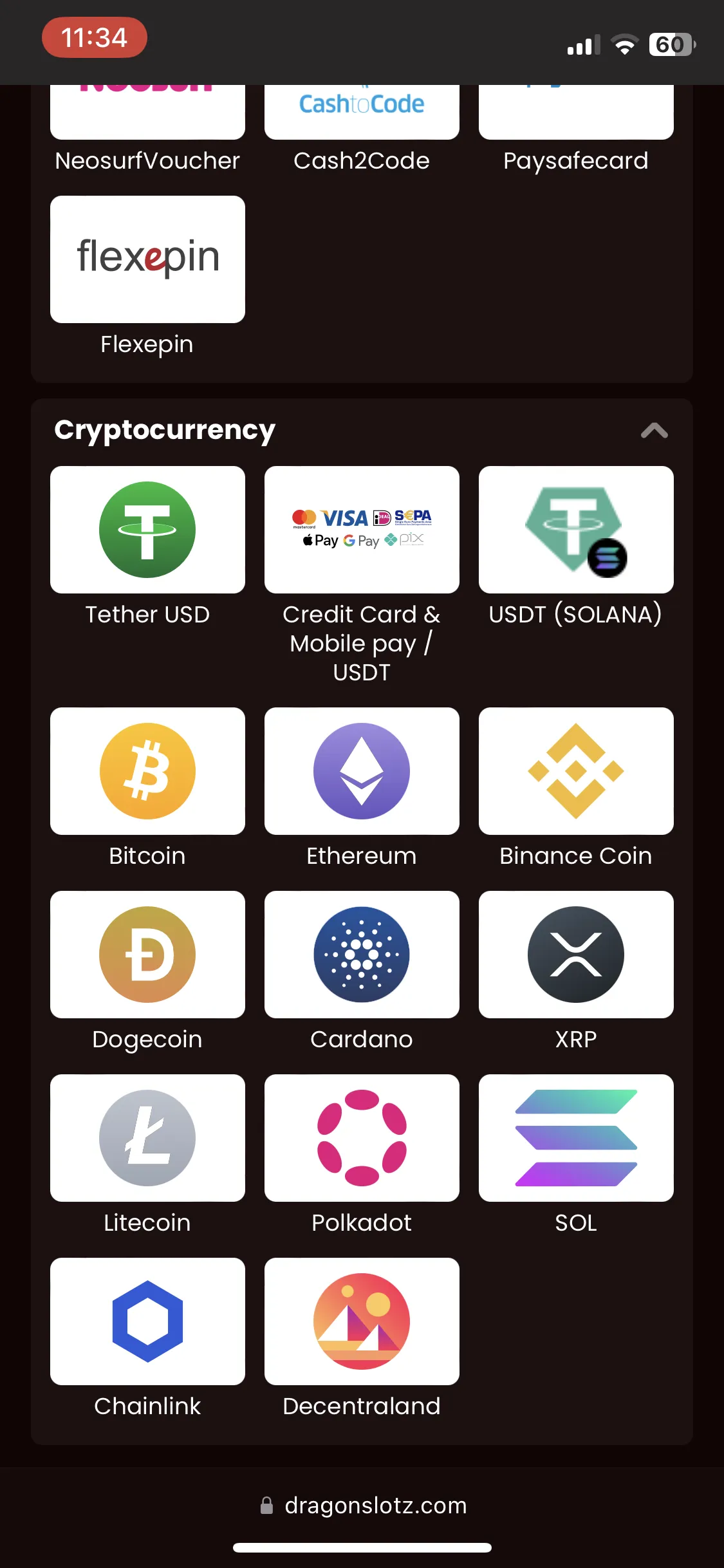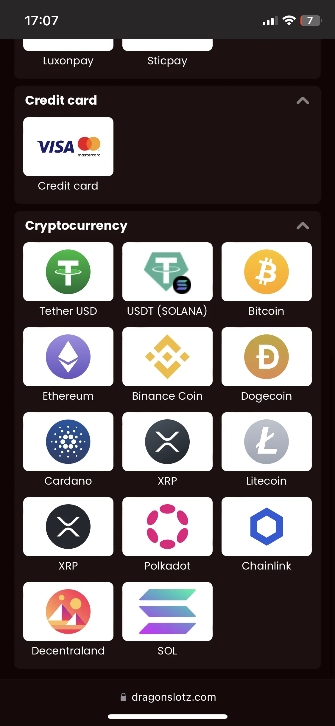 DragonSlots provides a wide range of fiat and crypto payment options to please every casino player. Choose traditional bank cards, convenient e-wallets, secure prepaid cards, convenient e-wallets, or a modern way to transfer money quickly and safely with crypto.