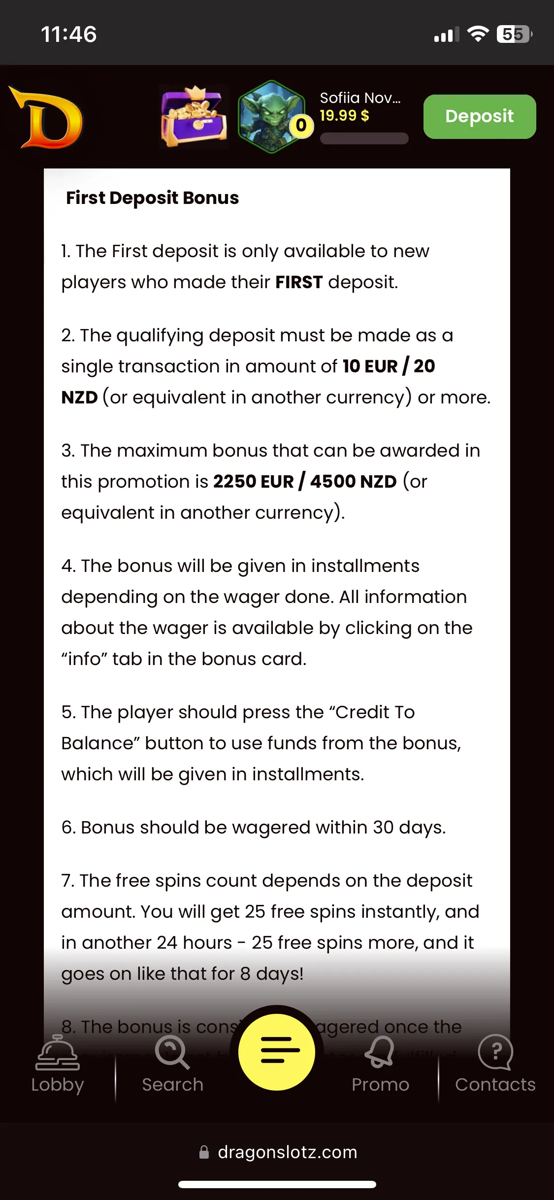 DragonSlots is a legitimate gambling site with a reputable license. It is owned by a recognized company in the iGaming industry and has all the necessary security measures players need for peace of mind. I loved the choice of games and payment methods. I was impressed with the dragon theme, which looks stylish and engaging. However, I was disappointed with the wagering requirements. 100x is beyond imaginable, and I am not sure many players will be happy with such rules. And even though I loved the games a lot, I didn’t win much, which is very unusual.
