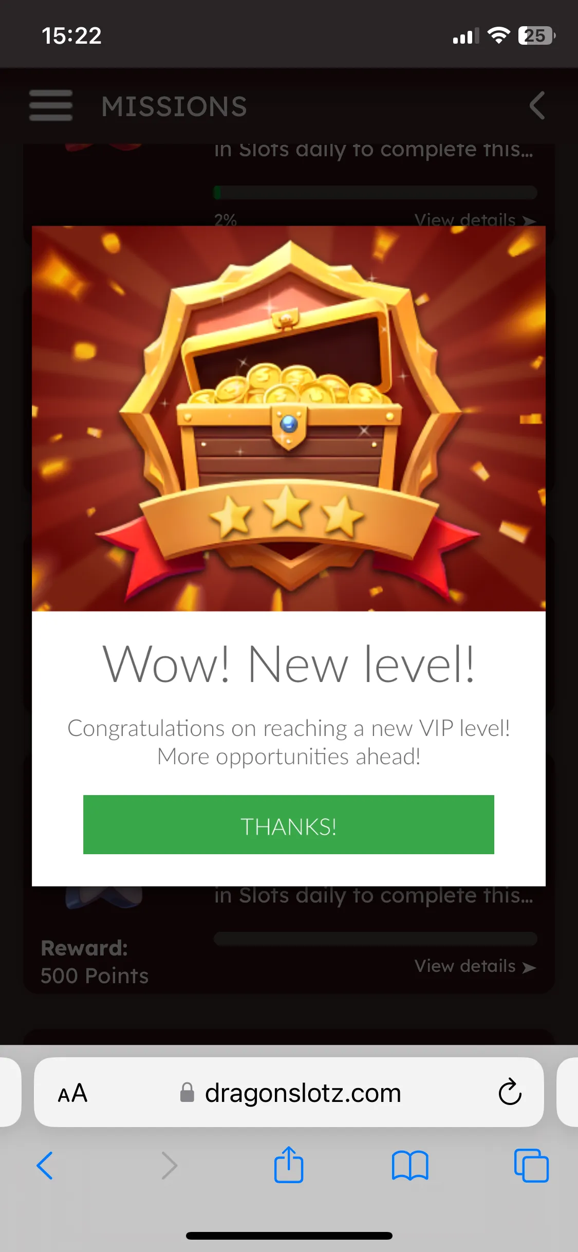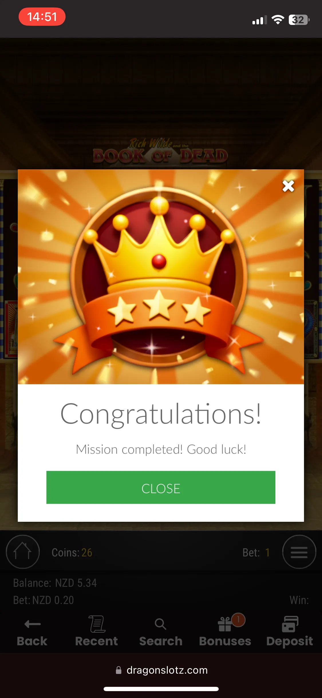 Also, DragonSlots casino has a system of missions (daily and weekly). There are random tasks that you will get points for when you complete them. Later, you can exchange them for free spins. I was lucky to collect 900 coins and exchange them for 10 FS on Dragon’s Dungeon with a win of 3.8.