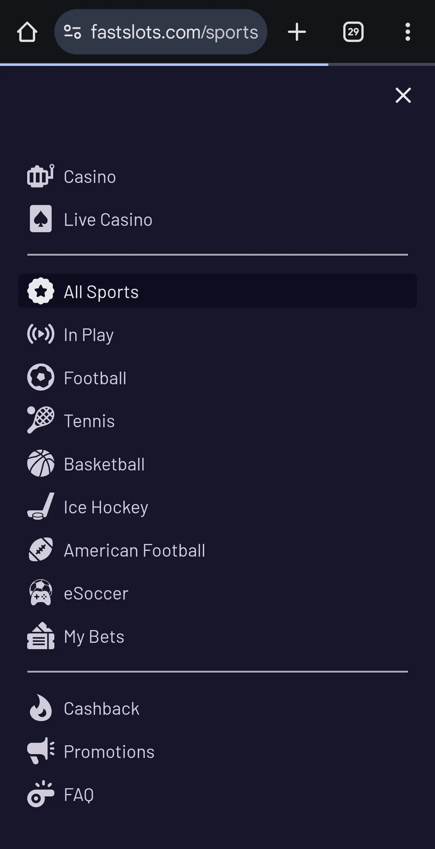 FastSlots features a tiered loyalty program that rewards regular play, though it operates behind the scenes and I couldn’t find a dedicated page on their website where they actually reveal information about it.