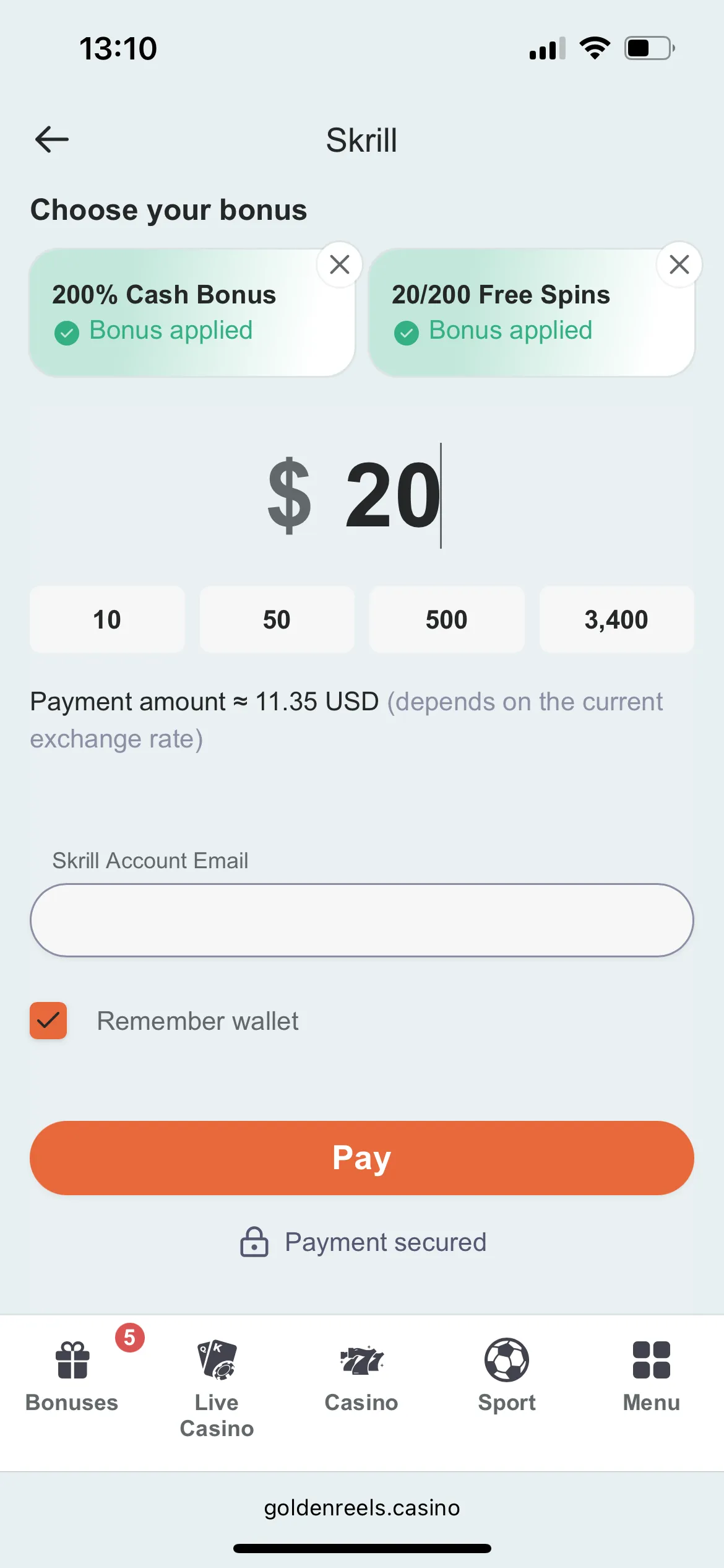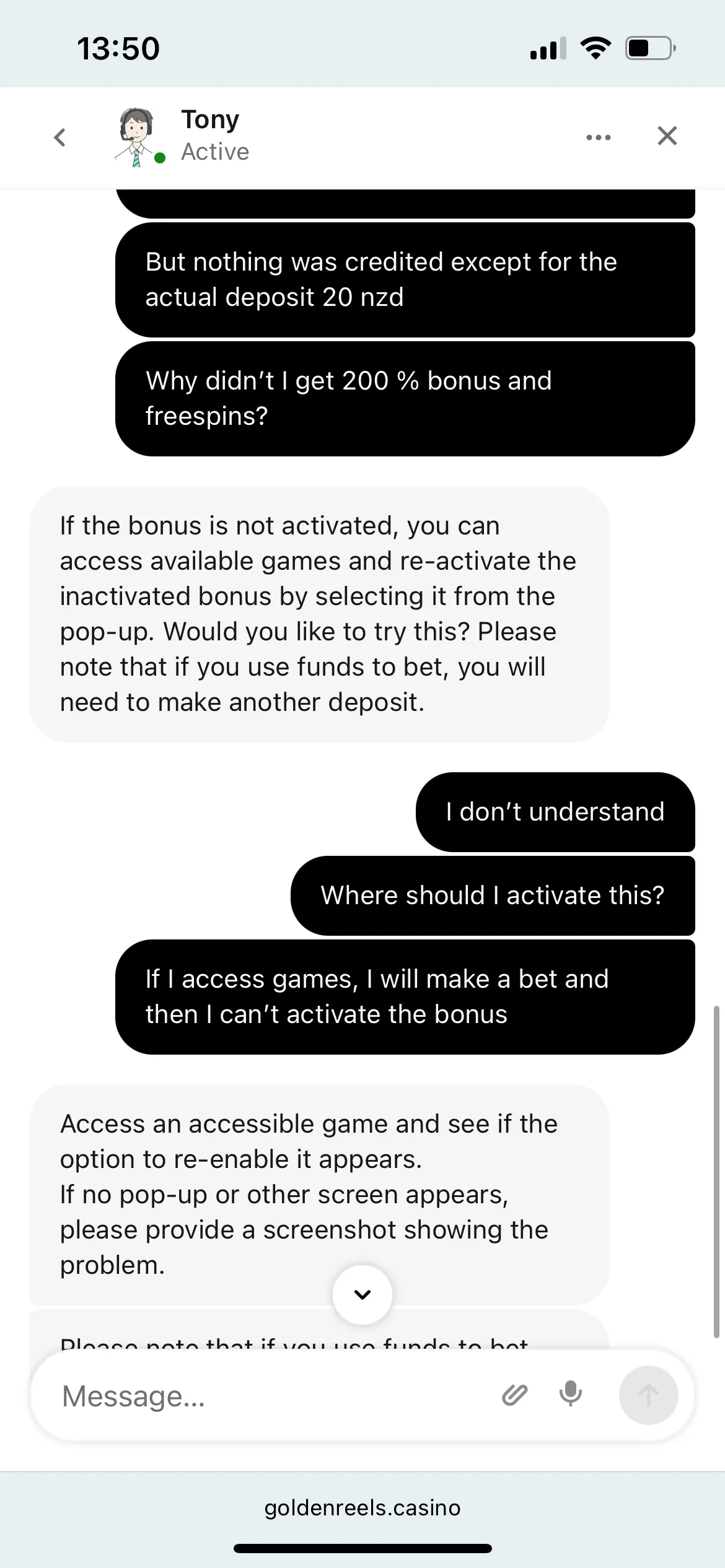 No matter what I did, I couldn’t log into the mobile app, so I had to log into the website version of the casino. This sucks, I didn’t get the 50 free spins.