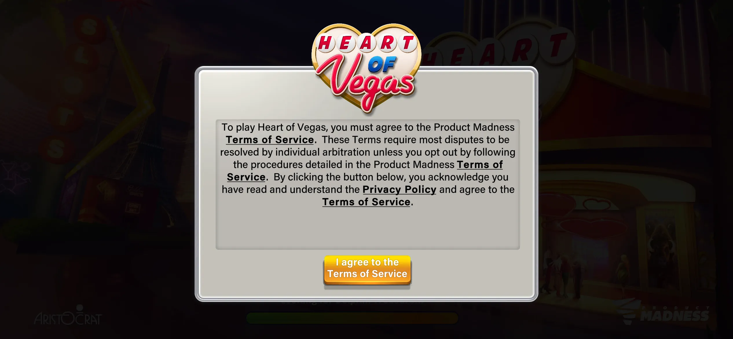 I found that Heart of Vegas is the product of Product Madness with parent organization Aristocrat Leisure Limited. It is a recognized global company in the gambling industry. It is mostly known for developing slot machines and lotteries.