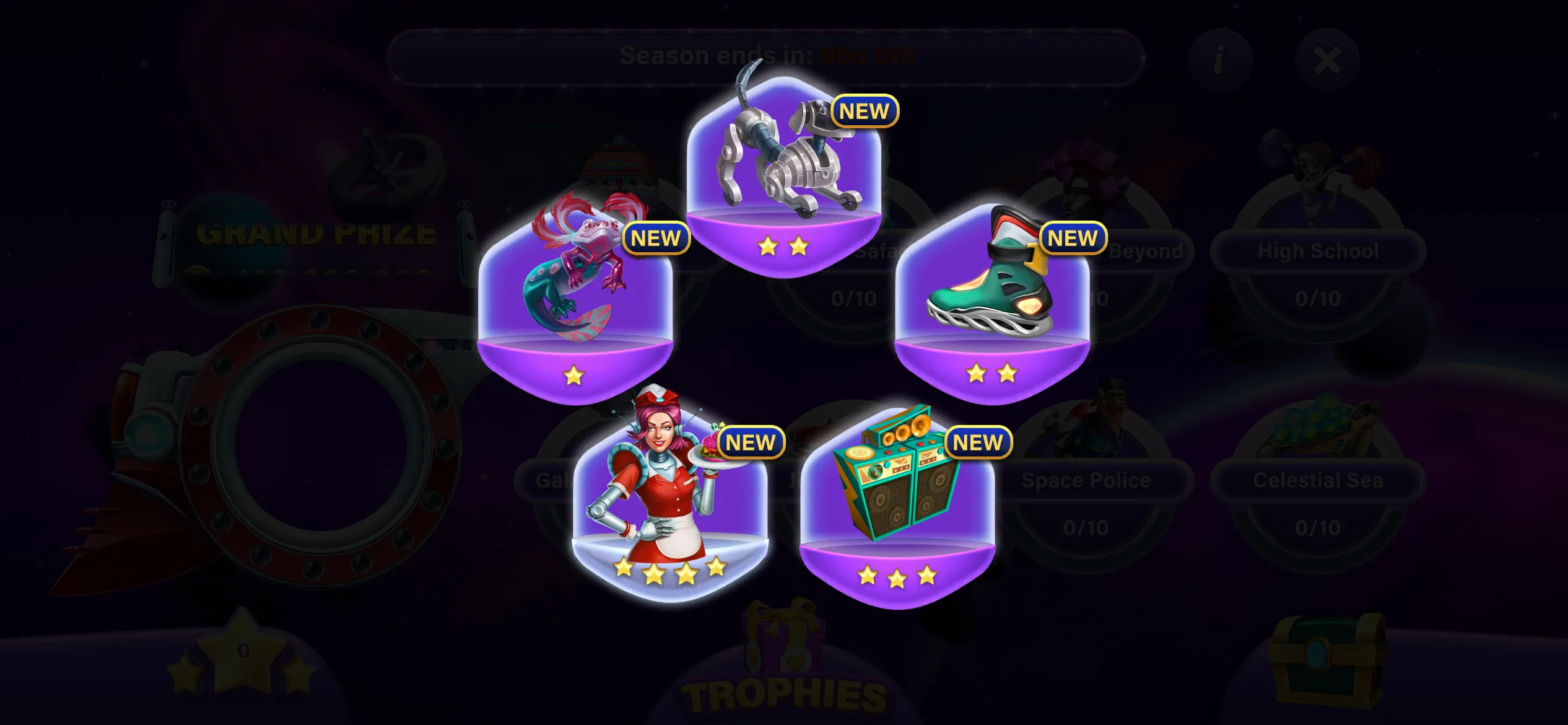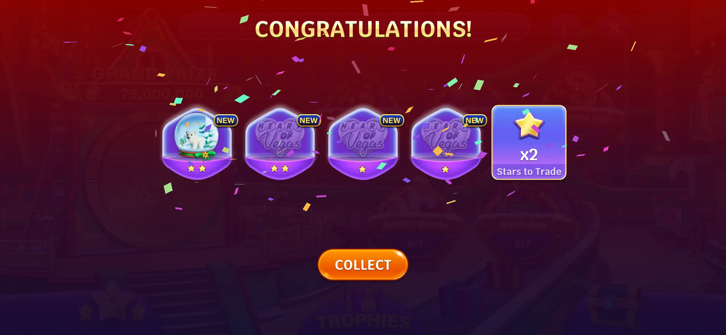 I also found Collections – one more way to collect rewards, still not monetary. In the Heart of Vegas app, you will be taken to different planets where your mission must be to find chests, unlock them, and get trophies. To do so, you must spin, purchase bonuses, and level up.