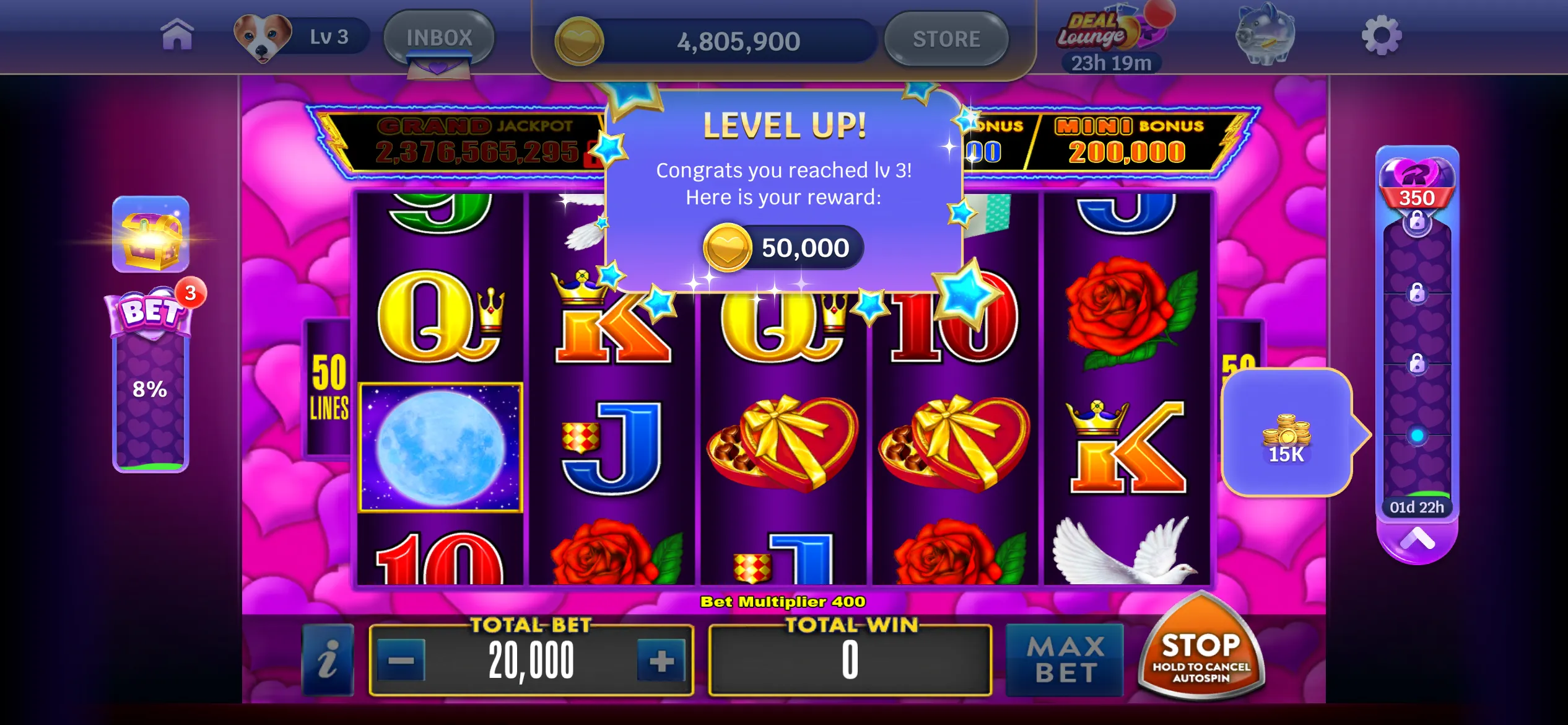 This app reminded me a bit of Jet Casino, which has levels which players are encouraged to achieve for extra rewards.