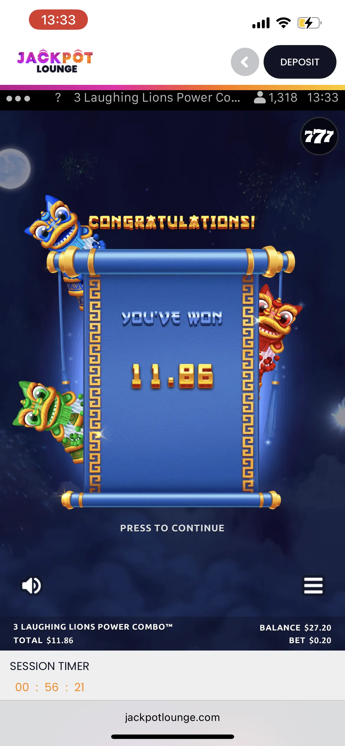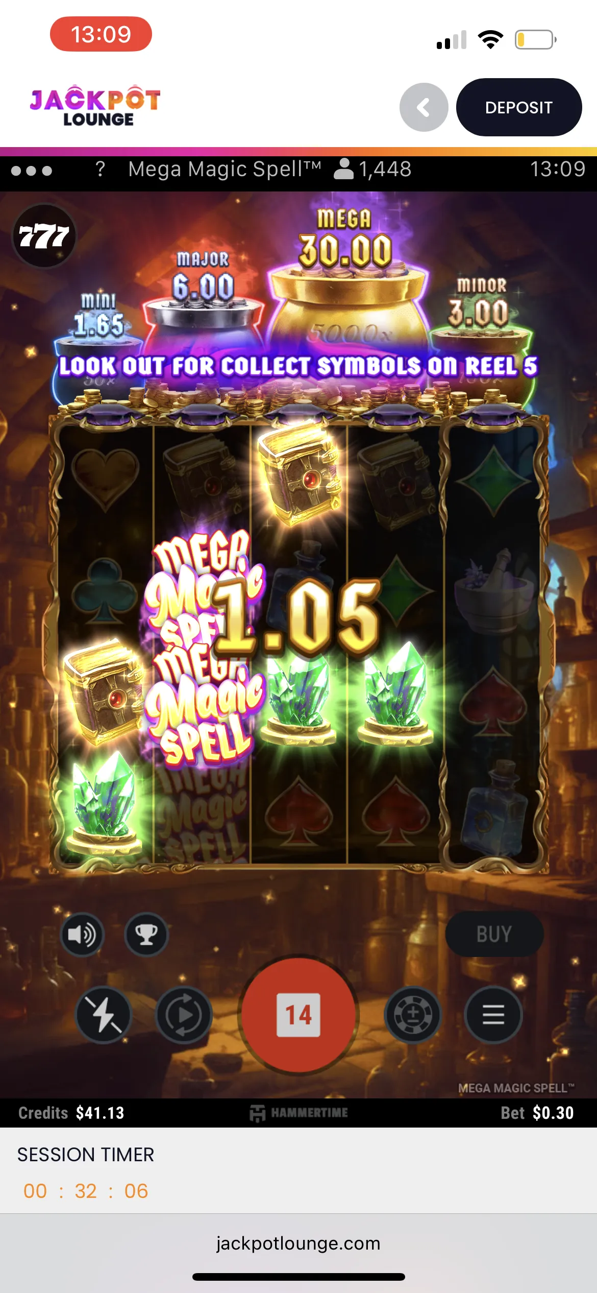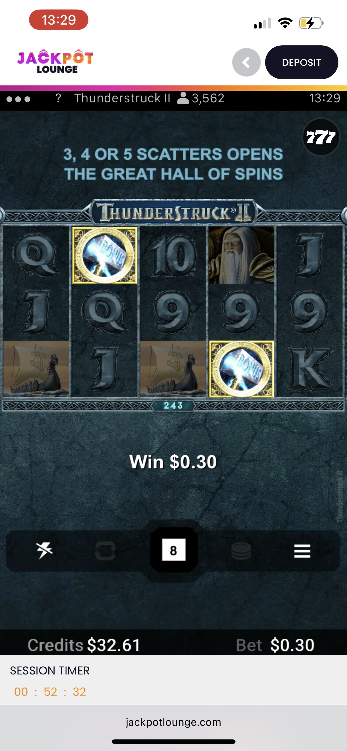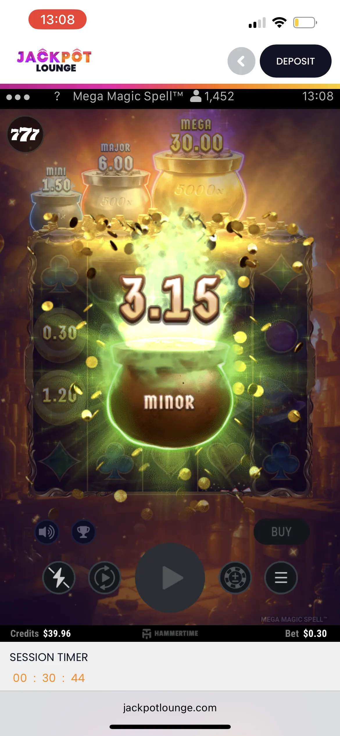 Of course, I also tested jackpot titles: Mega Moolah, Ancient Fortunes Poseidon, and Immortal Romance (since you know, it’s Jackpot Lounge).