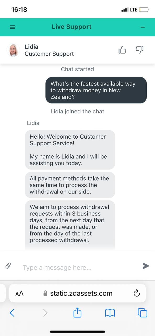 Withdrawals range from 20 to 10,000 NZD, depending on the withdrawal method.