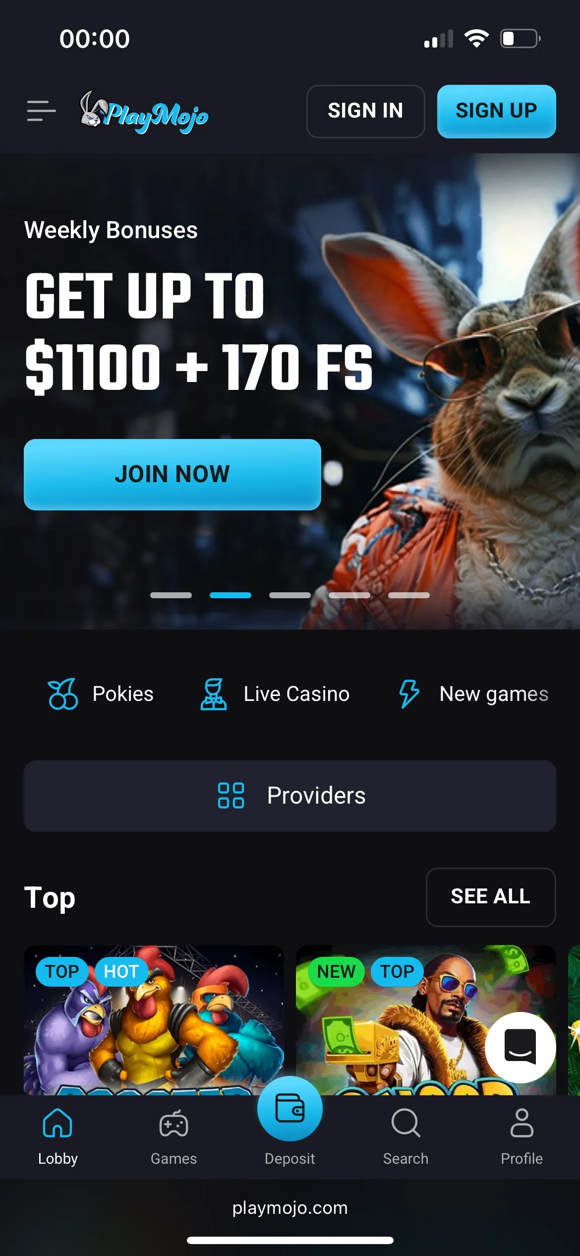 Creating a PlayMojo NZ login was super easy. I will provide details on registration further in this review. I can’t forget to say that the casino site looks very appealing and has a unique theme: there is a cute rabbit and pleasant colours.