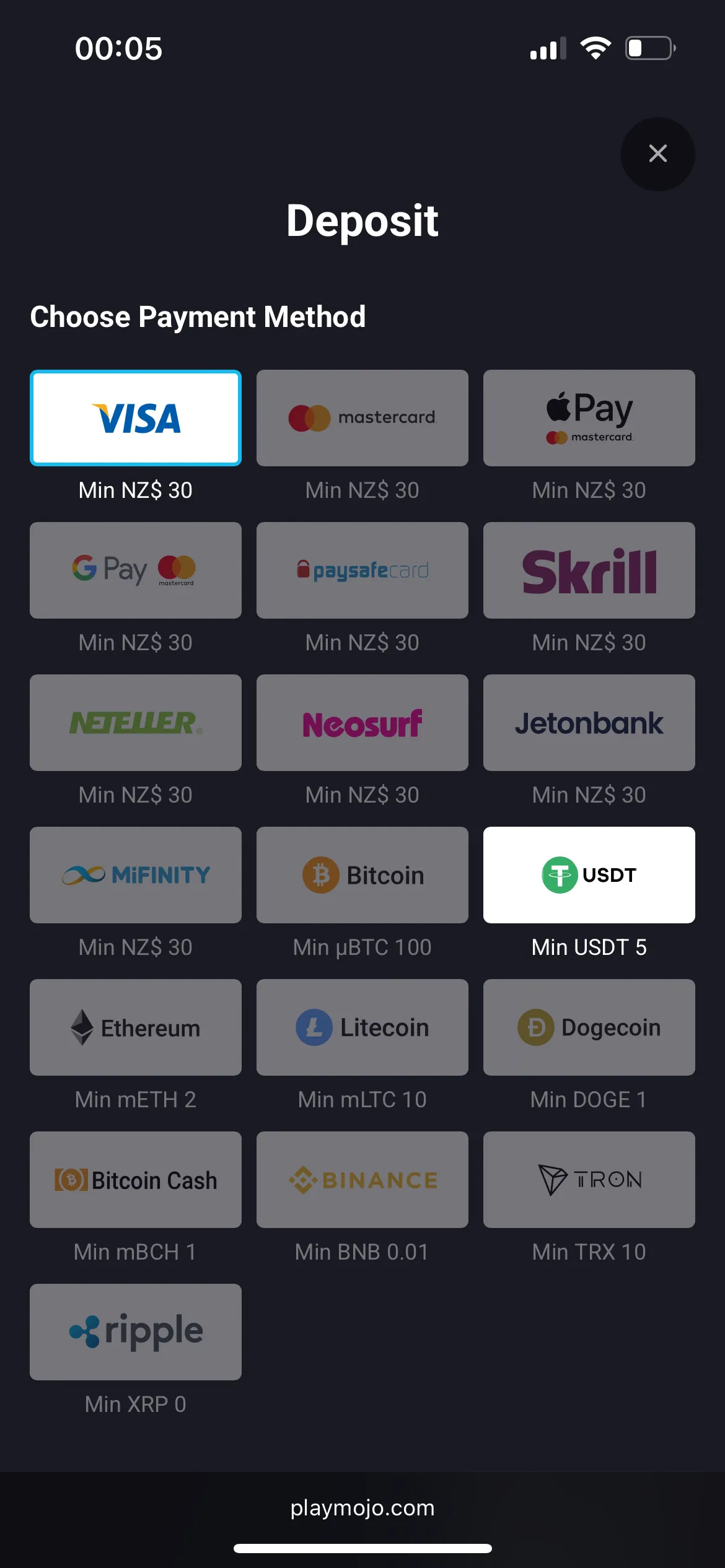 Just like my favourite gambling platform, Bizzo Casino, PlayMojo offers multiple fiat and crypto payment methods. Here, I provided a full list of deposit and withdrawal options Kiwis can use in 2025: