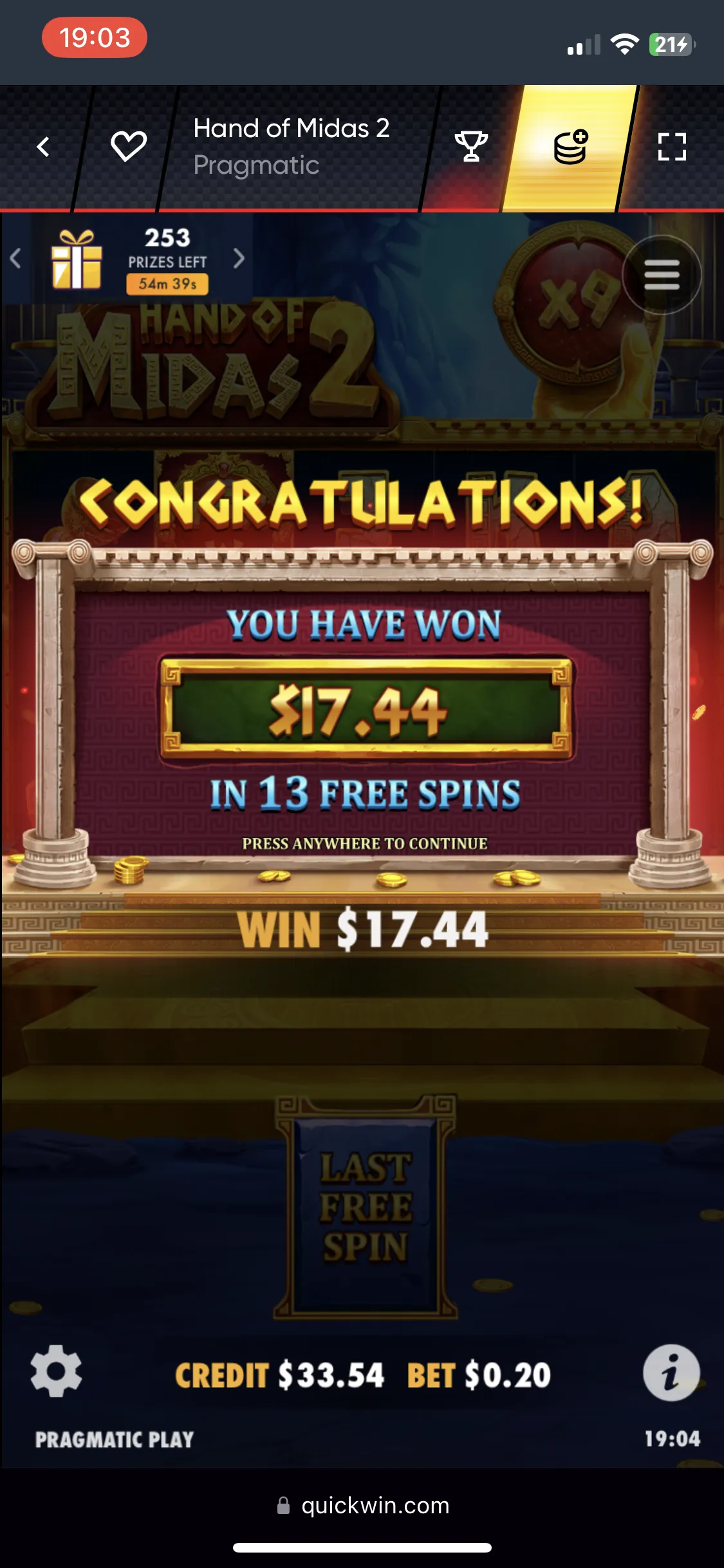 The pokies that brought me luck are as follows. I played Lights of Luck and managed to get a decent win of 6.8 USDT, Fairytale Beauties – 6.1 USDT, and Majestic White Leopard – 2.15 USDT. By playing Lucky Pharaon, I triggered a bonus game with power spins but haven’t won much. In the Kraken Coins Hold and Win, I was lucky to unlock a bonus game and land 5.8 USDT. Playing Sizzling Eggs, I landed 5 scatters and was stoked by 30 free spins at once. This helped me to win 14.42 USDT. Hitting Gates of Hades, I was lucky to land 4 scatters and got 15 free spins, which only resulted in 2.34 USDT win. Finally, the game that brought me luck was Hand of Midas: after landing 3 scatters, I got 13 free spins and won a massive 17.44 USDT.