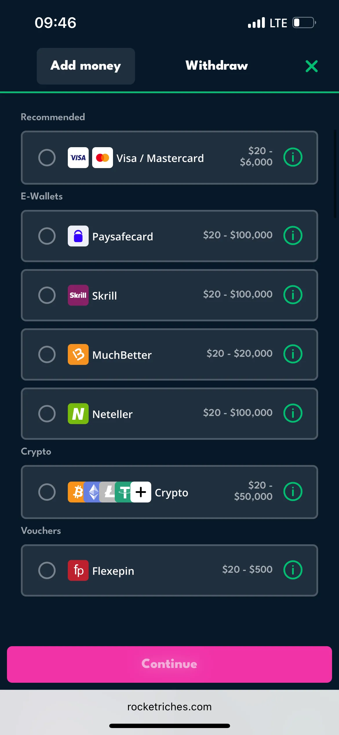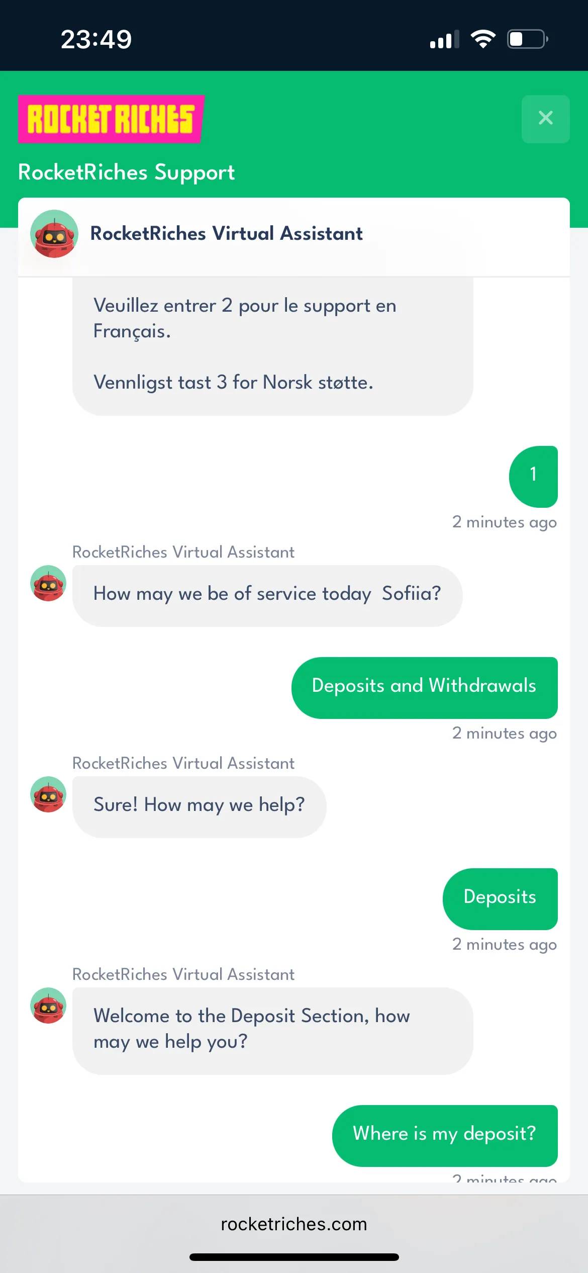 I came across several lucrative promotions, like welcome bonus and cashback as well as exploring popular payment methods. One of the best things about Rocket Riches casino is cryptocurrencies. I personally use crypto for deposits and withdrawals because I love the speed and low commission. Also, being a popular online casino in NZ requires accepting crypto, so Rocket Riches didn’t disappoint.