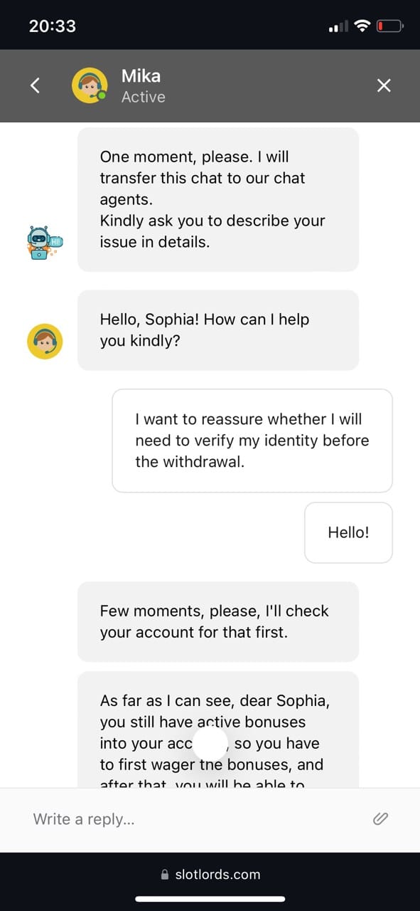 Customer Service at SlotLords Casino