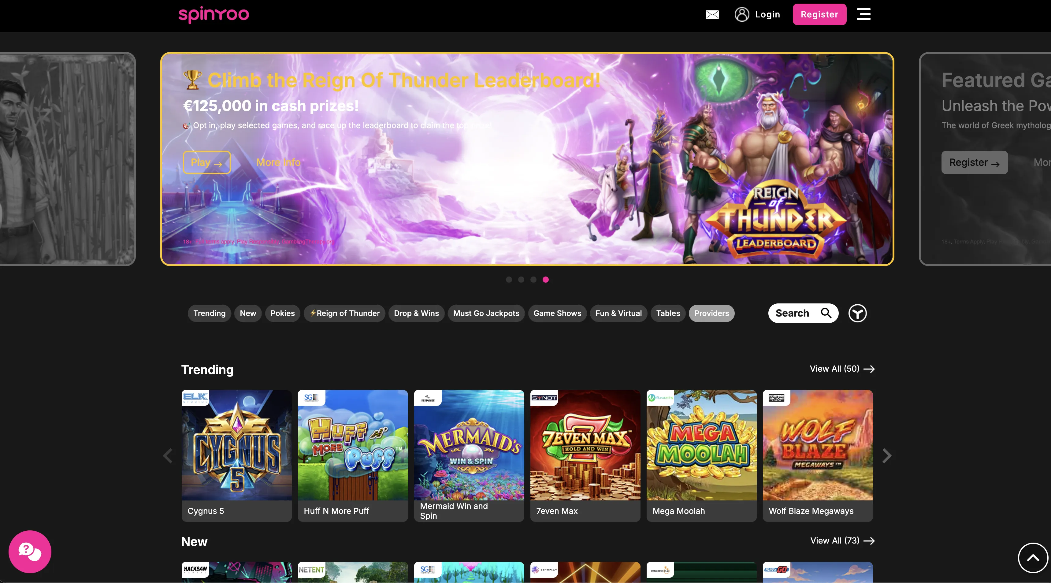 Signing up at SpinYoo was quick, and I liked how I could see the welcome bonus I was eligible to claim upon joining. The lobby is clean with filters by provider and category, which makes finding favourites easy.